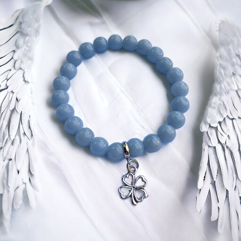 Az angelit karkötő különleges, nyugtató hatású ásványból készült ékszer, amelyet kifinomult és elegáns megjelenés jellemez. Az angelit gyöngyök finom kék színe az ég tisztaságát idézi, békét és harmóniát sugározva viselője számára. Az angelit ásványt az angyalok ásványának is tartják.