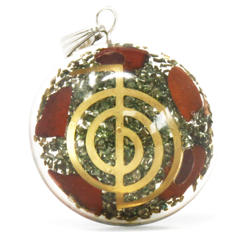 Ez a klönleges orgonit medál egyedi és spirituális jelentéssel bíró kiegészítő, amelyet a harmónia és az energiaáramlás támogatására terveztek. A medál közepén egy aranyszínű Reiki szimbólum található, amely a gyógyítás és az energiafókuszálás szimbóluma. A medál belsejében különböző színű ásványi kristályok helyezkednek el, amelyek színe változatos (a képtől eltérő színű is lehet, de valamennyi termék gyönyörű kivitelezésű és színösszeállítású).