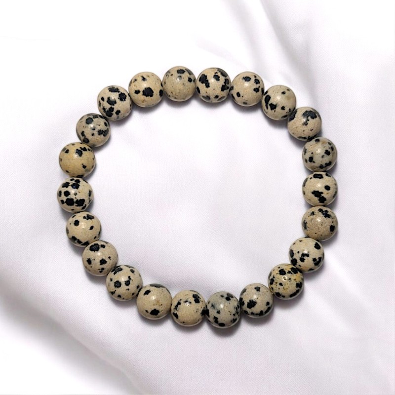 A dalmata jáspis karkötő különleges pöttyös mintázatával és energiájával azonnal magára vonja a figyelmet. Ez az ásvány a dalmata kutyák bundájára emlékeztet, innen kapta nevét. A dalmata jáspis a játékosság, az öröm és a védelem szimbóluma, amely segít visszahozni az életbe a könnyedséget és a pozitív energiákat.