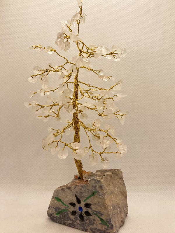 Gyönyörű féldrágakő szerencsefa, levelei és ágai szabadon állíthatóak tetszésünk szerint. Valamennyi féldrágakő ásvány fel van fűzve a fára (azaz nem csak ragasztva van). Igazán szép, időtálló ajándék.