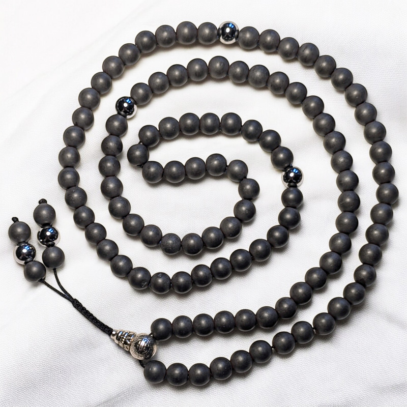 Hagyományos tibeti csúszócsomóval rendelkező, állítható szemtávolságú kézműves ásványmala. Használhatjuk szabadon gyakorlatainkhoz, meditációnkhoz, elcsendesülésünkhöz, vagy magunkon viselhetjük nyakban és csuklón hordva is. A malával való kontaktus energetikai élményt, harmonizációt, feltöltődést okoz.