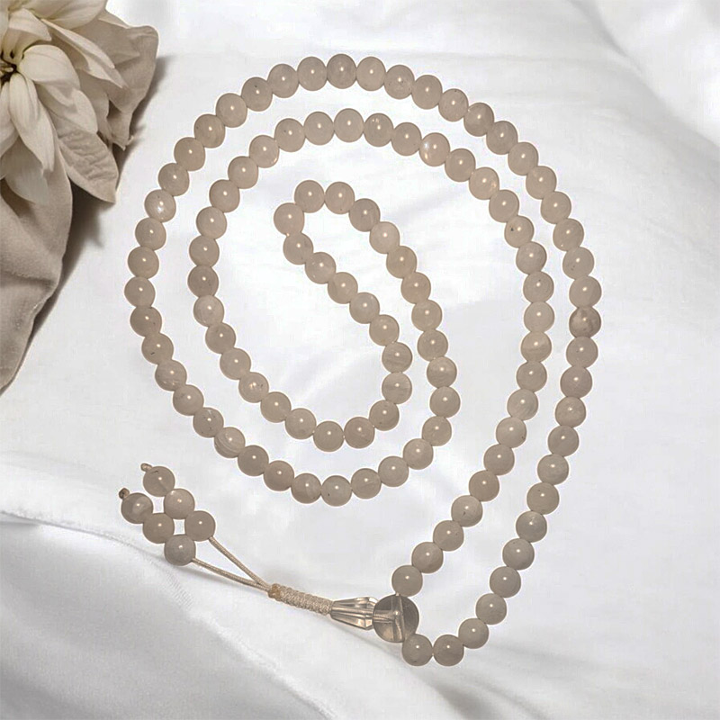 Hagyományos tibeti csúszócsomóval rendelkező, állítható szemtávolságú kézműves ásványmala. Használhatjuk szabadon gyakorlatainkhoz, meditációnkhoz, elcsendesülésünkhöz, vagy magunkon viselhetjük nyakban és csuklón hordva is. A malával való kontaktus energetikai élményt, harmonizációt, feltöltődést okoz.