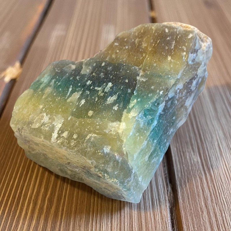 Ez a 7 cm-es, 216 grammos nyers fluoritdarab valódi földi színjáték: zöld, kék és sárgás árnyalatok egyesülnek benne egyetlen kristályformációban. A fluorit az egyik legkristálytisztább rezgésű ásvány, melyet gyakran emlegetnek az elme megtisztításának, a szellemi tisztánlátásnak és a koncentráció megerősítésének köveként.