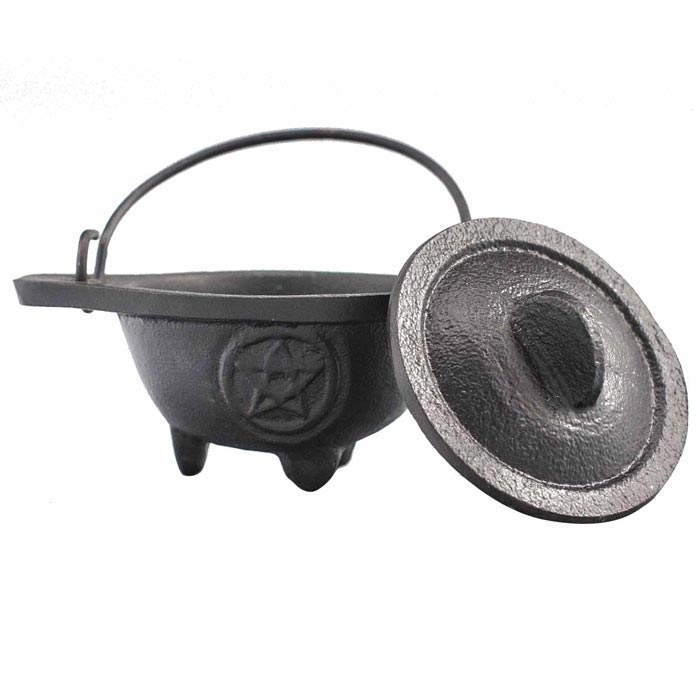 Öntöttvas égető üst fedővel, például zsálya, palo santo, vagy más füstölők égetéséhez. Használható különböző anyagok keverésére, vagy bármi egyébre is.