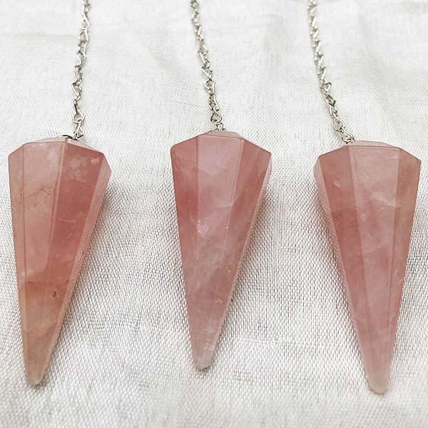 Kb. 3 cm-es klasszikus rózsakvarc inga fémláncon.