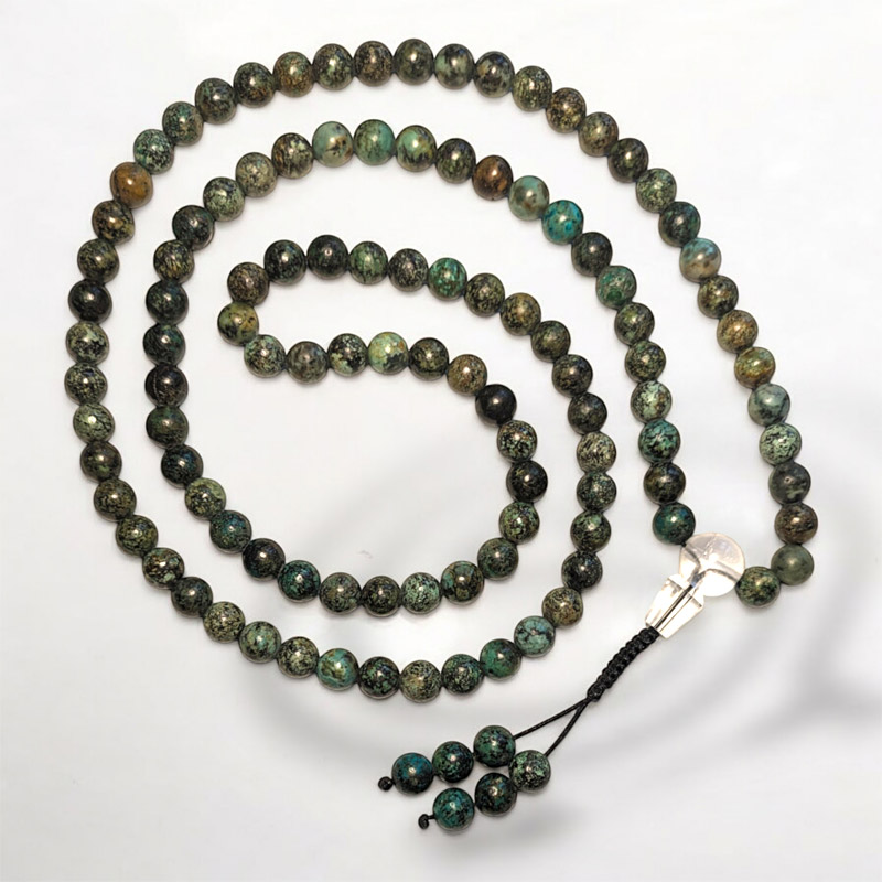 Hagyományos tibeti csúszócsomóval rendelkező, állítható szemtávolságú kézműves ásványmala. Használhatjuk szabadon gyakorlatainkhoz, meditációnkhoz, elcsendesülésünkhöz, vagy magunkon viselhetjük nyakban és csuklón hordva is. A malával való kontaktus energetikai élményt, harmonizációt, feltöltődést okoz.